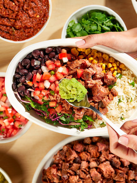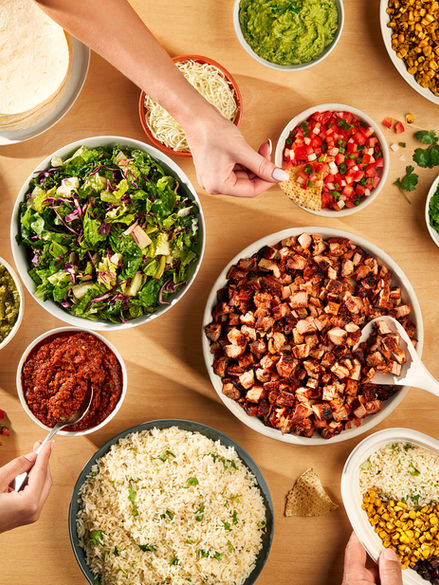 All burritos include cilantro-lime rice, black beans, roasted corn, Monterey jack cheese, sour cream, pico de gallo, and your choice of protein. Each burrito includes: tortilla chips, salsa and napkins.